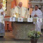 Dimanche 31 mai 2015, nous avons fêté le 150e anniversaire de la bénédiction de la première pierre de la Basilique. Aux Louvetous, aux amis de La Louvesc et aux Pèlerins se sont joints des membres des familles spirituelles et groupements de vie évangélique du diocèse de Viviers. Après l’accueil, présentation de ces groupes : Communauté Vie Chrétienne (CVX), Focolari, Fraternité séculière Charles de Foucauld, Renouveau charismatique, Equipes du Rosaire, Fraternité franciscaine séculière. Puis, conférence très appréciée sur le thème : « Eglise, Pierres vivantes, et un seul Corps pour la mission » par Jean-Charles Dazy. Après le repas partagé, temps de découvertes et de rencontres. Journée clôturée dans la joie par la messe présidée par Mgr François Blondel.